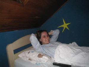 She lays her still tiny hand on my stomach.